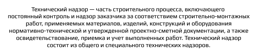 Участие независимой службы технического надзора в ходе строительных работ в 98% случаев позволяет предотвратить срыв сроков проекта.